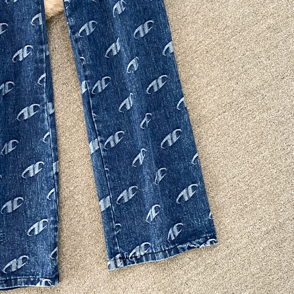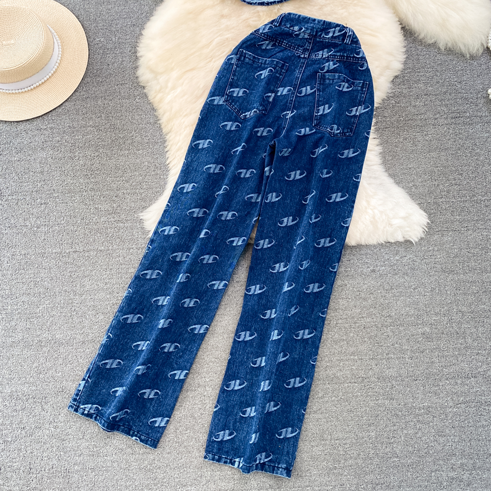 American Retro Style: Two-piece set featuring a chic denim vest and high-waisted straight pants for a vintage look.